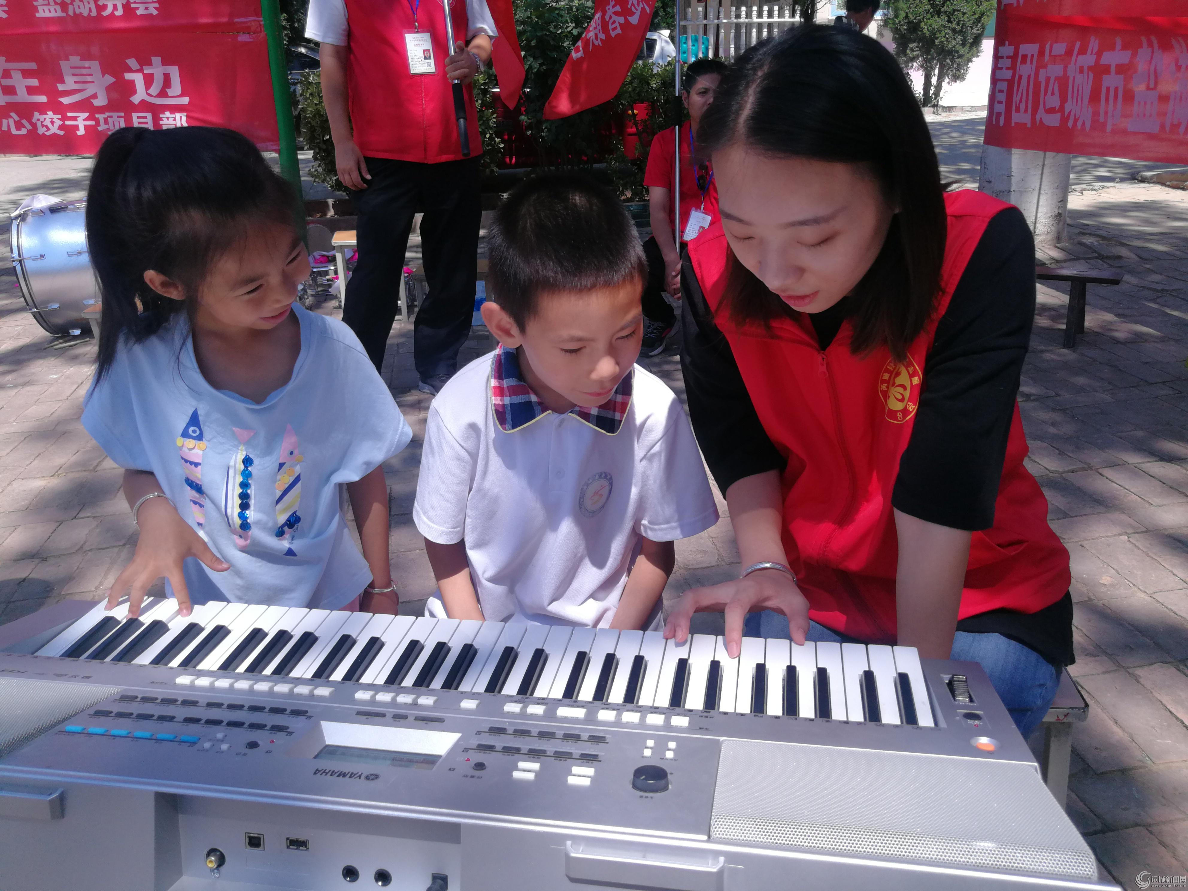 张梦桐(右一)指导孩子练习电子琴 王棉 摄