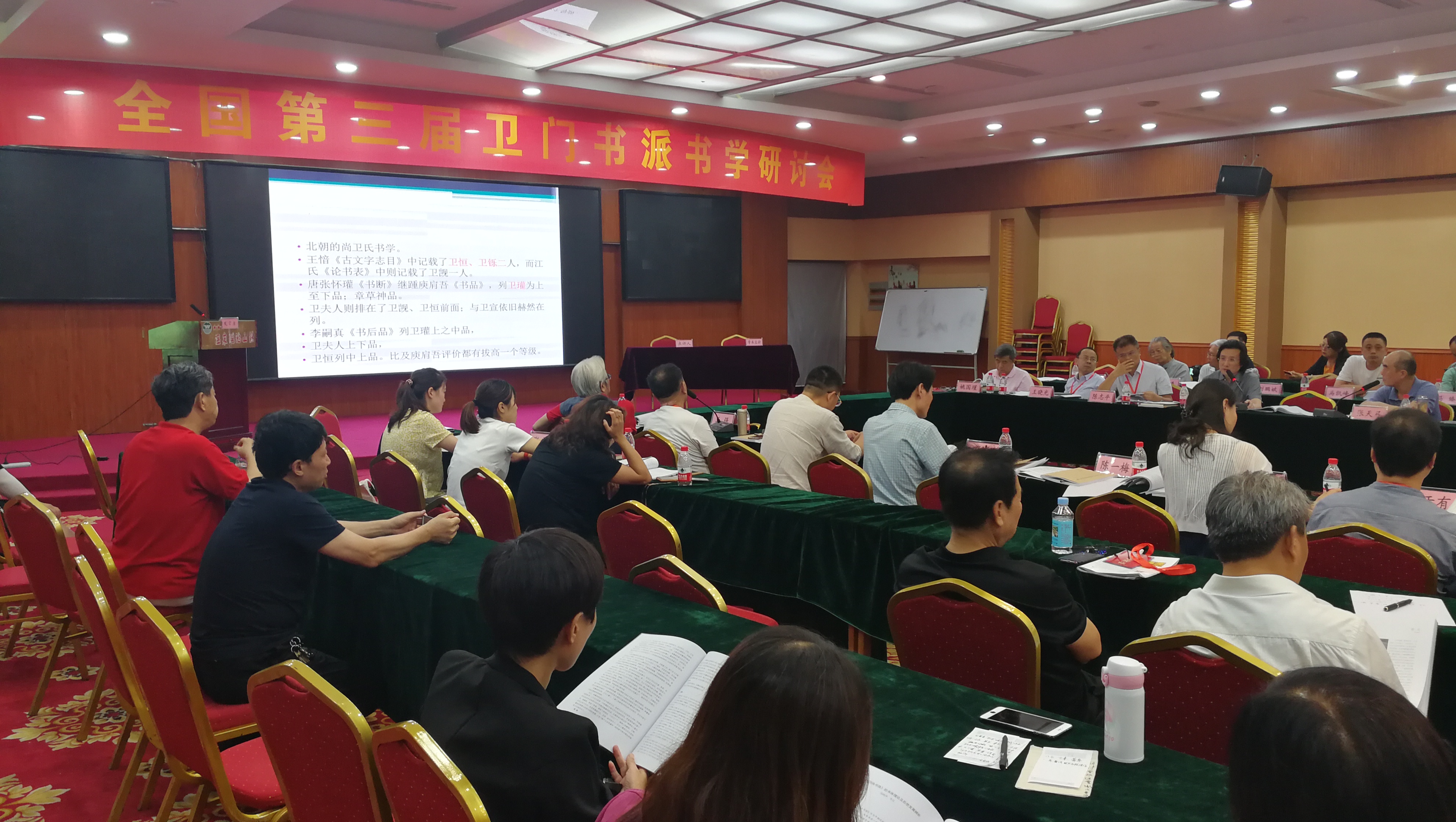 中国书协学术委员会副主任张天弓,中国书协学术委员会委员、山西大学教授姚国瑾,中国书协学术委员会委员、《书法导报》副总编辑姜寿田,中国书协学术委员会委员、暨南大学教授、博士生导师陈志平等20余位来自全国的书法名家、书学理论家受邀参会。专家学者们从各自的书学研究课题出发,围绕“卫门书派”展开深入探讨,从历史定位、书体源流、继承发展、文论研究、美学价值等多个方面,对“卫门书派”进行论证、分析,充分挖掘其历史文化价值和书法学术价值。