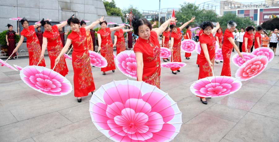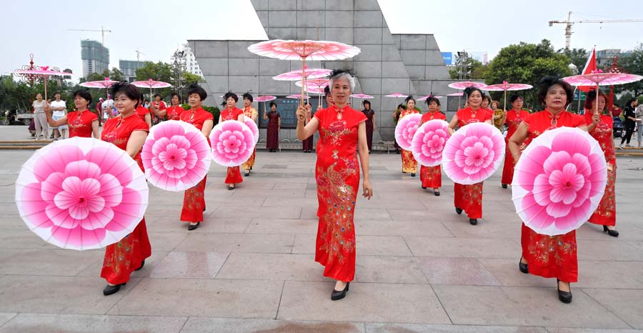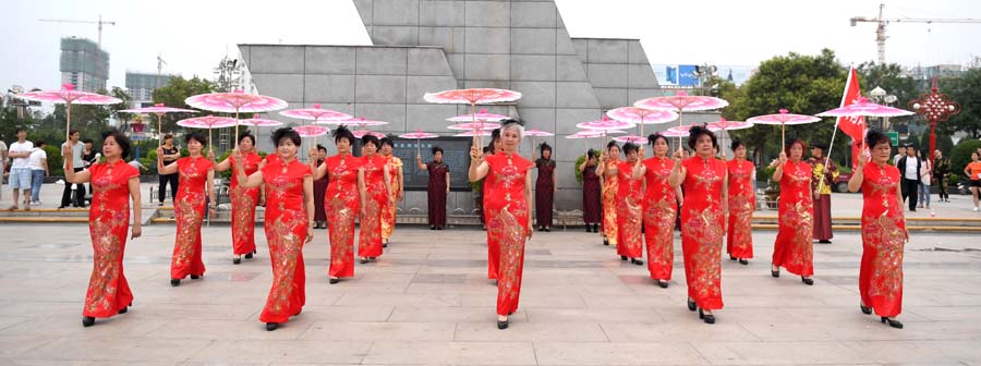 南风广场凤凰旗袍队队长周春梅,今年57岁,蔬菜公司退休职工。她酷爱中国旗袍文化,2017年组建了南风广场凤凰旗袍队,如今队员已达65人。她们的平均年龄在60岁以上,最年长的已80高龄。周春梅想方设法开设场地、筹集资金,从基础功开始严格训练队员,汗水浇灌出南风广场一道靓丽的风景线,南风广场凤凰旗袍队最终走向了国家级舞台。