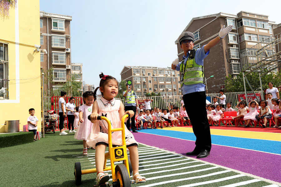7月15日上午,盐湖交警大队宣传科和三中队民警来到辖区香河湾幼儿园,开展安全教育活动,为幼儿园的孩子们送上了一份交通安全大礼包。