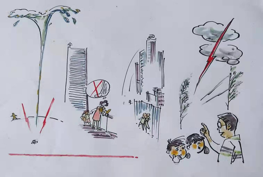 在大风、暴雨等恶劣天气时,高空坠物更加容易发生。家长要告诉孩子,当遇到极端天气,一定要躲在安全的室内;刮风下雨时,要尽量减少出门频次。