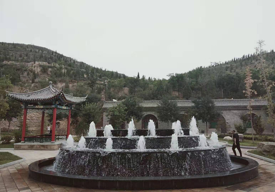 经过几年开发建设,圣王山庄的容颜越来越秀丽,充满山野情趣:仿古建筑、窑洞宾馆,还有喷泉和各色绿植,给人以“幽处有闲居”的感觉。远处是层层叠叠的山色,近处还有几只美丽的孔雀,难怪这里会受到人们的欢迎。一位村民说,最近这里还打出了温泉,出水温度听说还挺高,以后在家门口就能泡温泉了。