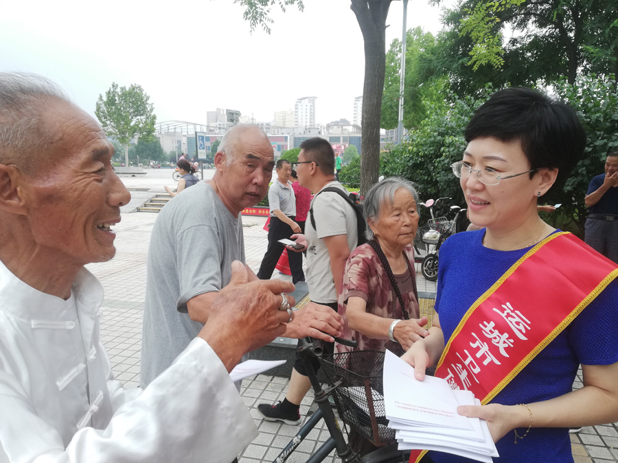 7月17日,市卫生健康委员会在市区南风广场开展老年法宣传活动。
