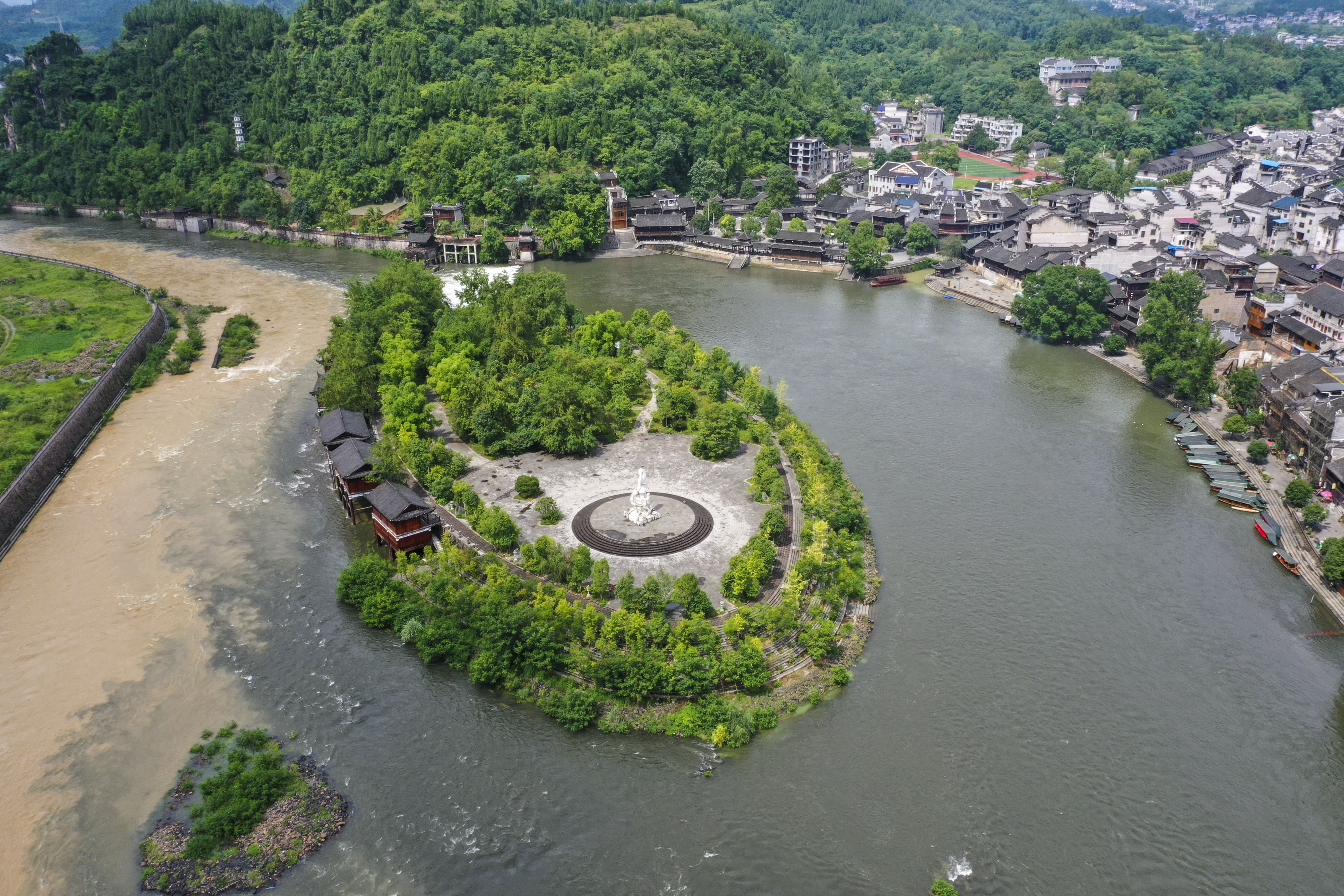 7月18日无人机拍摄的清水江上的翠翠岛。