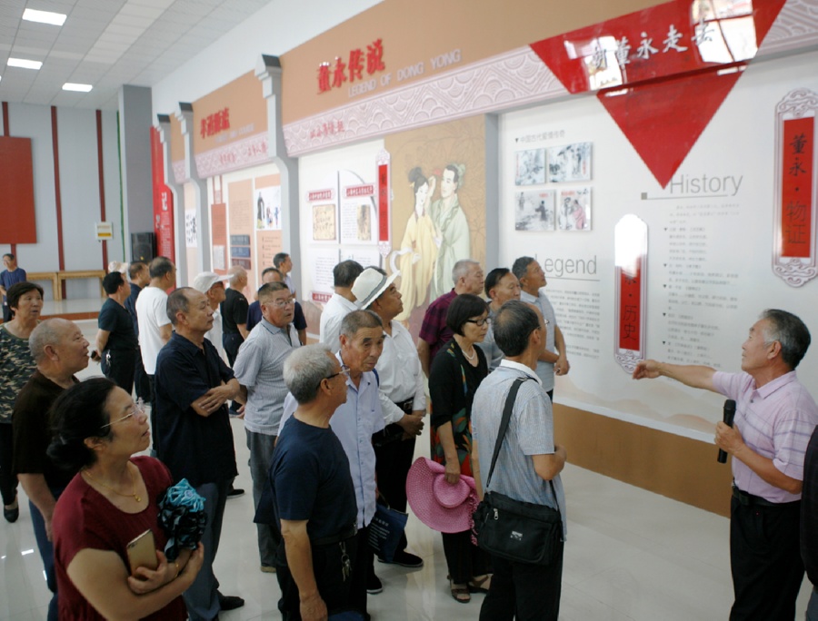 ▲7月19日,万荣县部分退休党员在该县皇甫乡前小淮村参观“董永传说”讲习所的系列展览,感受非物质文化遗产内涵。