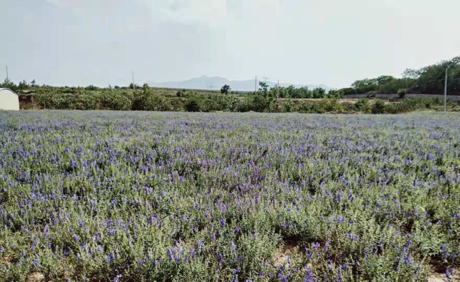 ▲7月21日,稷山县太阳乡下王尹村,一大片黄芩正在怒放,紫色的花海成为动人的风景。