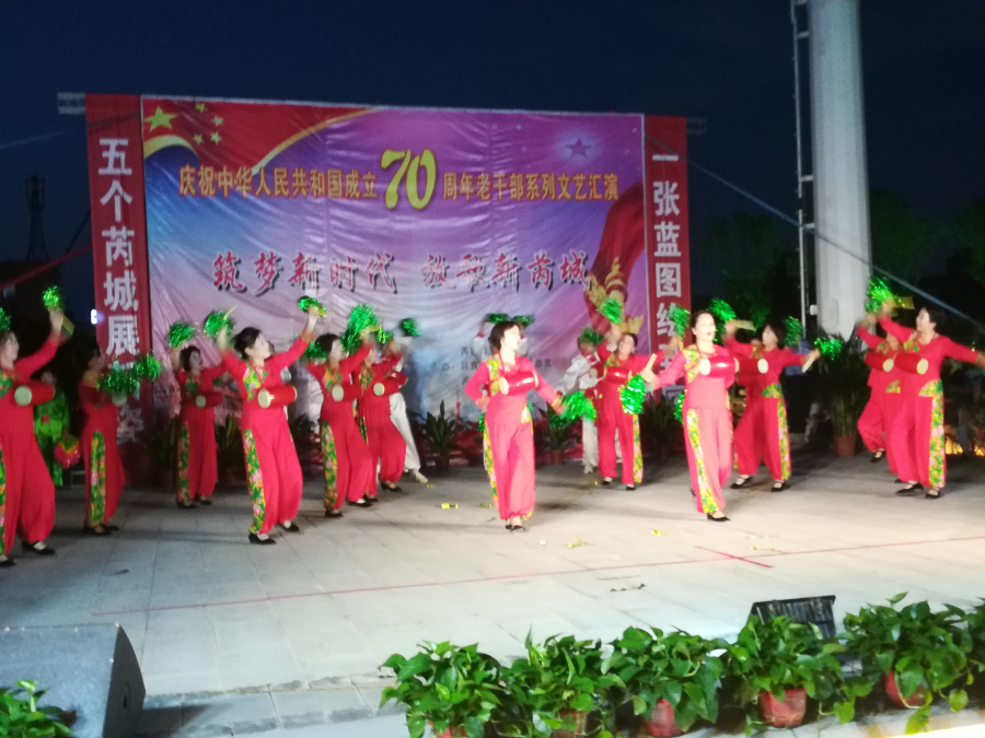 当日,由芮城县委老干部局主办,芮城老年大学、县直离退休干部党总支、县老年体协协办的庆祝新中国成立70周年“共筑中国梦,放歌新芮城”文艺汇演,在该县隍庙广场举行。 李会乐 摄