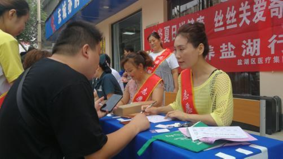 活动现场,七社区工会邀请市第一医院眼科中心、盐湖区人民医院的医护人员,为200余名职工进行义诊,检查项目包括测血压、做心电图、眼底检查等。义诊结束后,市第一医院将为筛查出有白内障和胬肉的困难职工,进行免费治疗。除此之外,社区工作人员给职工发放了“海姆立克急救法图解”等急救知识的宣传页,为职工普及高温防护、中暑急救等知识(上图)。同时,东城工会联合会相关负责人还为20余名环卫工人及志愿者发放了风油精、棉签、创可贴等防暑用品。