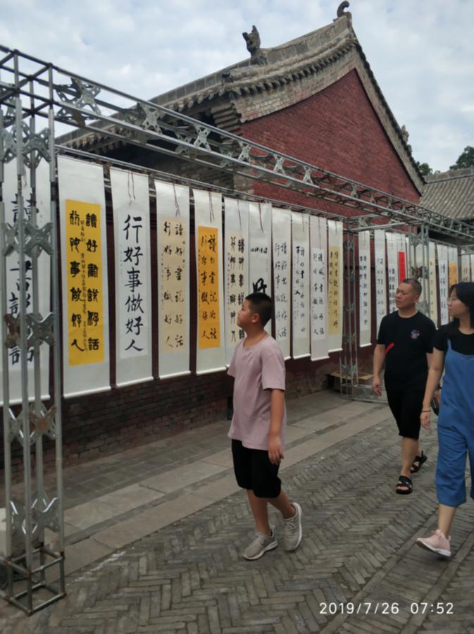 悬挂在关帝家庙西侧墙壁上的180余幅关帝“读好书、说好话、行好事、做好人”的“四好圣训”优秀书法作品展,营造了浓浓的文化氛围,不少人驻足欣赏并拍照留念。运城市关氏后裔联谊会副会长关文广告诉记者:“关氏宗亲参与此次活动,在弘扬关公文化的同时,也传承了我们关氏的家风家训,让更多人懂得要读好书、说好话、行好事、做好人。”