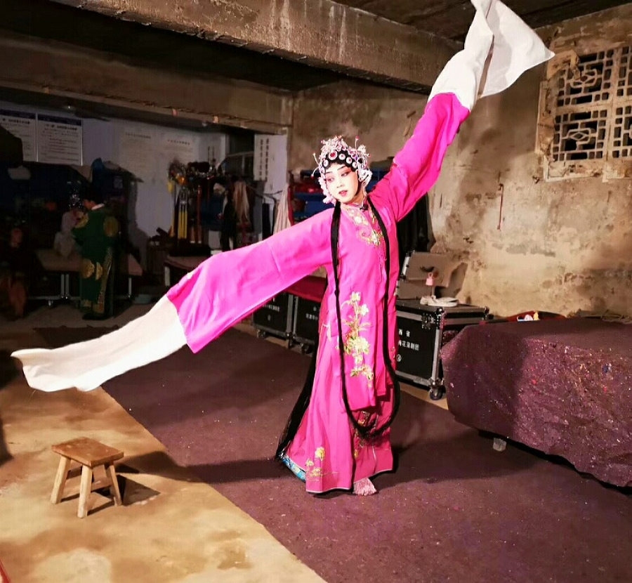 今年5月的一天,她的剧团在三门峡交口一个露天舞台演出,一天出演三场,烈日当空。她主演《火焰驹》里的黄桂英,早上十点开戏,她披麻戴孝,跪在地上,头顶烈日含泪唱起《打路》,那段时间她咽炎复发,嗓子难受。