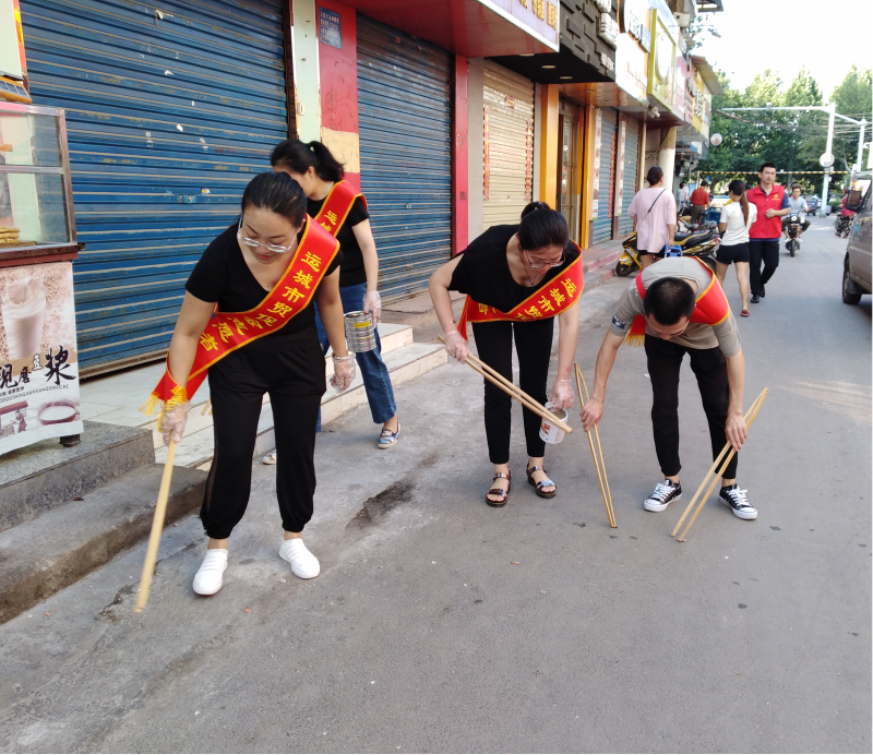 活动中,市商务局副局长关晓龙宣读了“创建全国文明城市倡议书”,市商务局党办主任娄伟带领大家进行宣誓。随后,参加活动的人在条幅上签名。最后,大家分为三组,分别在辖区悬挂“烟头收集桶”,捡烟头,打扫卫生(上图),倡导市民养成文明健康的行为习惯。