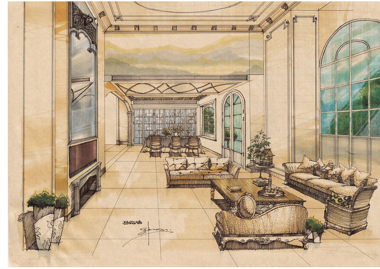 吕松焰的室内装修手绘设计效果图