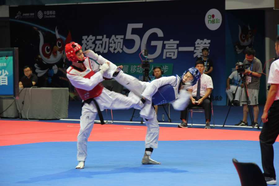 当日,社会俱乐部组男子-51kg级决赛,由山西小将刘镇飞对阵天津的马中涛。对阵双方实力相近,比分几度胶着,频频打出精彩对决,燃爆全场。刘镇飞今年15岁,虽然大赛经验少,心理素质不占优势,但优点是场上爆发力强,敢打敢拼。能够打入决赛,已经出乎他自己的意料,可谓是本次比赛的一匹黑马。山西队教练彭露在赛前专门叮嘱,让他放开打,不要有心理包袱。首局比赛,双方打得比较保守,都在进行试探性攻击,渴望捕捉对方的破绽,虽然进攻频频,但双方都没能得到分数,最终势均力敌,打成2:2平局。第二局,随着比赛深入,双方加快进攻节奏,比分也是你追我赶,一直没能拉开,各自都有机会。在结束前几秒,谁能取胜,还是个悬念。运动员打得精彩,观众看得入神。在比赛最后一秒,刘镇飞突然出击,一记干净利落的后踢直捣对手胸前,获得两分,将比分反超,以13:12险胜第二局。在关键的第三局决胜局对战中,双方更加谨慎,稳扎稳打,没有把握绝不轻易出击,最终还是刘镇飞技高一筹,抓住对手的破绽,果断出击,以5:1拿下比赛。赛后,刘镇飞说,这是他第一次参加全国级别的比赛,不论输赢对他都是磨炼,是一次经验的积累,他的下一个目标是争取参加全运会,再创佳绩。