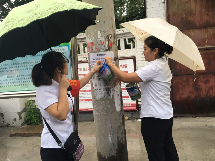 随后,社区主任王倩带领大家在辖区巷道悬挂了烟头收集桶(下图),引导居民自觉将烟头投放到烟头收集桶中,让烟头不落地成为一种习惯。