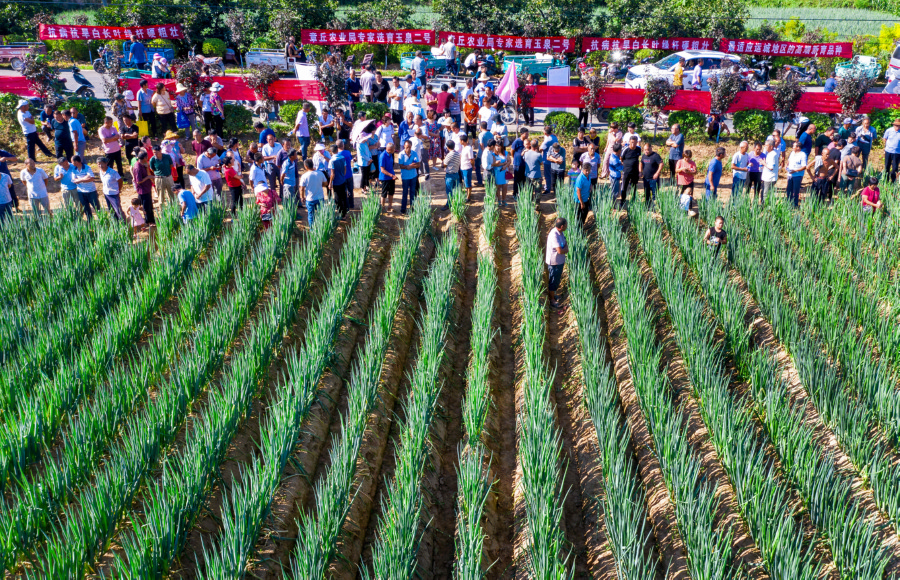 8月13日,葱农在万荣县万泉乡庙后村观摩学习。