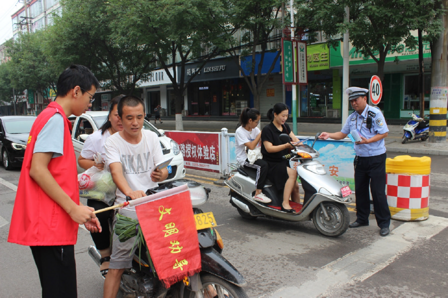 8月10日上午,稷山交警大队联合学雷锋文明志愿者,组织辖区学校的部分小学生开展暑期学生志愿者文明交通劝导活动。