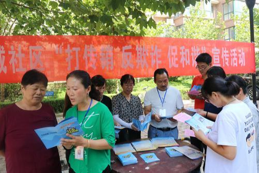 在深化打击传销和反欺诈工作中,该社区以创建“无传销、无欺诈社区”为抓手,继续通过发放宣传资料、设置举报箱、宣传专栏、悬挂张贴横幅等形式,大力宣传《中华人民共和国反传销法》等有关法律法规,提高广大居民的知晓率和自觉抵制传销和欺诈意识。社区工作人员还深入到各居民小区,认真细致入户摸底排查,加强对重点区域的巡查与监控,较好地提升广大居民的获得感、安全感和幸福感。 特约摄影 刘佳