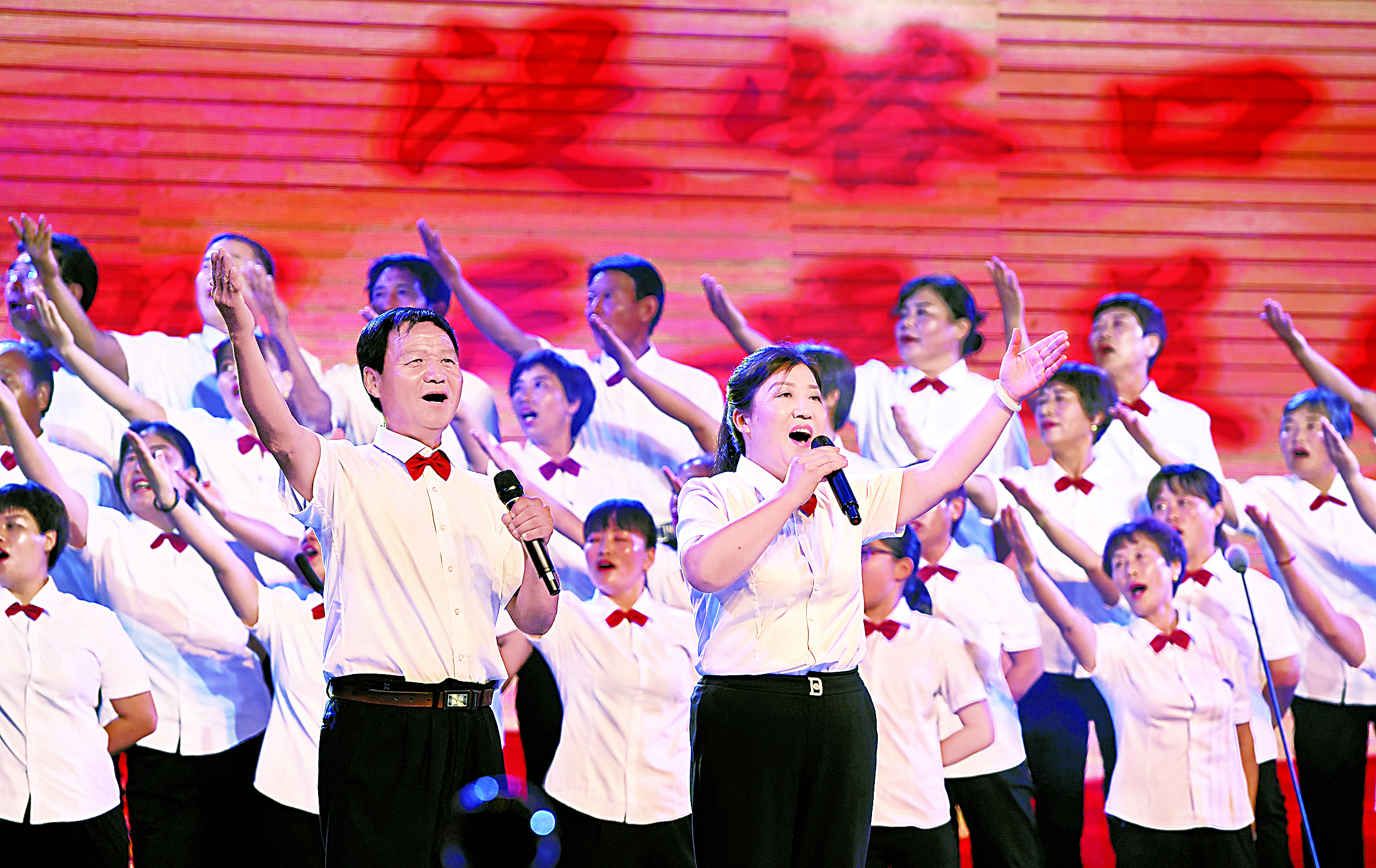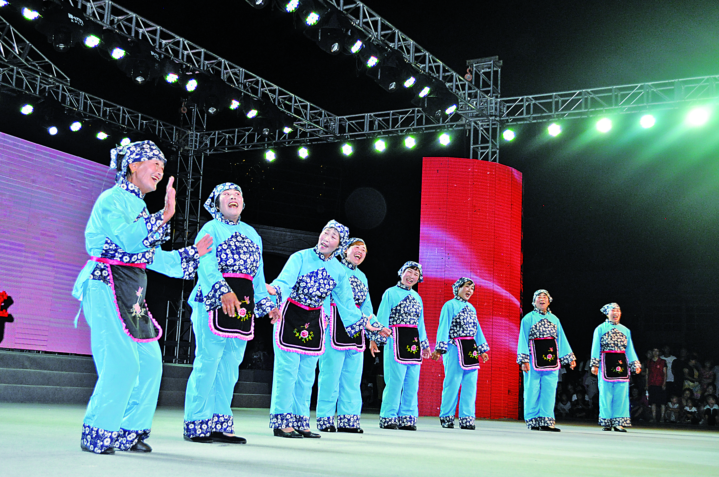 活动当晚,笑话广场灯火辉煌,人头攒动,歌声嘹亮。展演在歌伴舞《万荣新时代》中拉开序幕。大合唱《歌唱新荣河》、独唱《千年庙后变新颜》、歌伴舞《灵池飞歌》……一首首带着泥土芬芳的村歌相继亮相,这些歌声时而婉转悠扬,时而慷慨激昂,不仅唱出了群众饱满的激情,也充分展现出了新农村的新面貌,赢得现场观众的阵阵喝彩。
