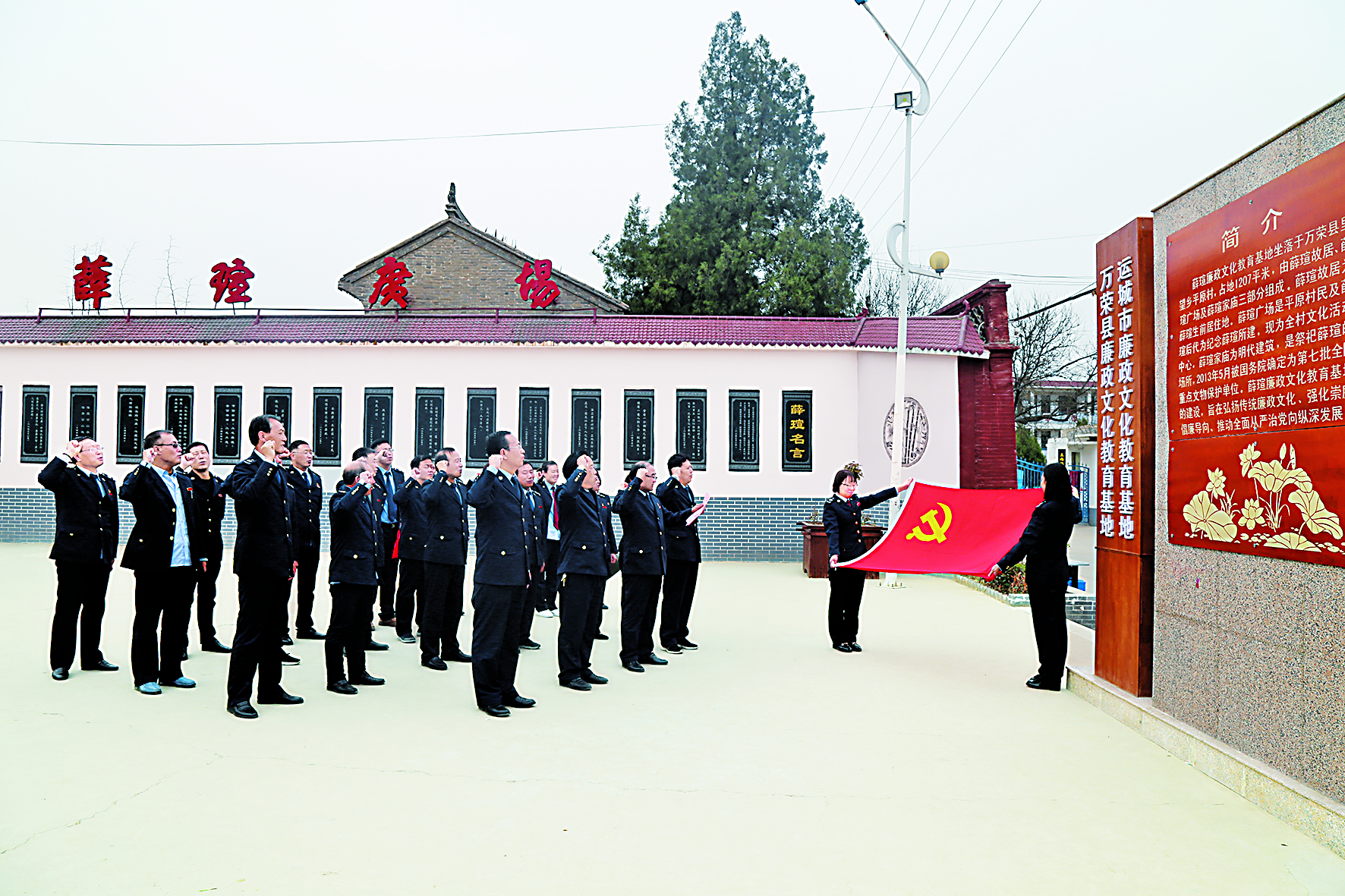万荣县税务局干部在廉政教育基地参观学习后重温入党誓词 资料图片