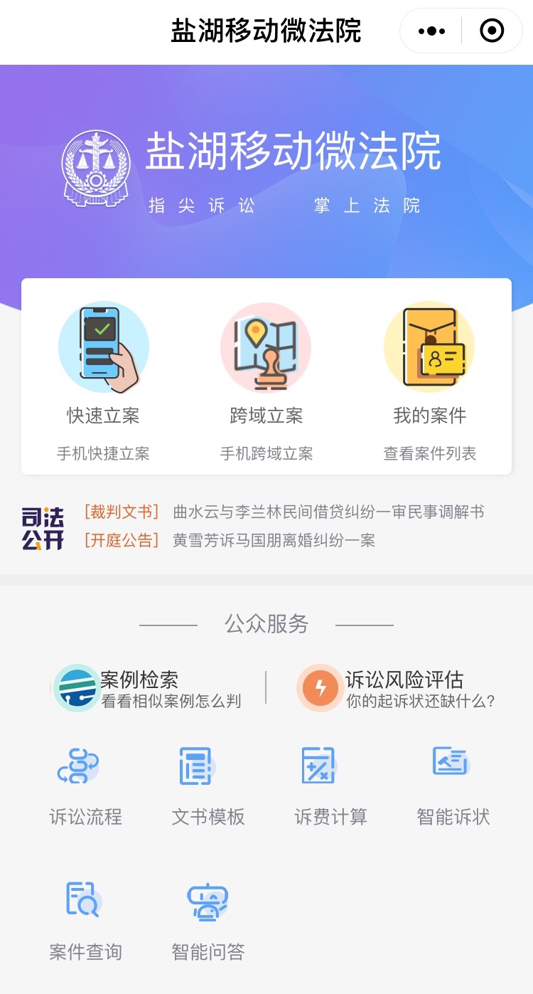 据了解,“盐湖移动微法院”集立案、送达、证据交换、执行信息公开、查阅等诉讼流程于一体。除此之外,司法公开、风险评估、案例检索、智能诉状、网上立案、诉讼计费、电子送达、证据交换……这些都是“盐湖移动微法院”的“超能力”。