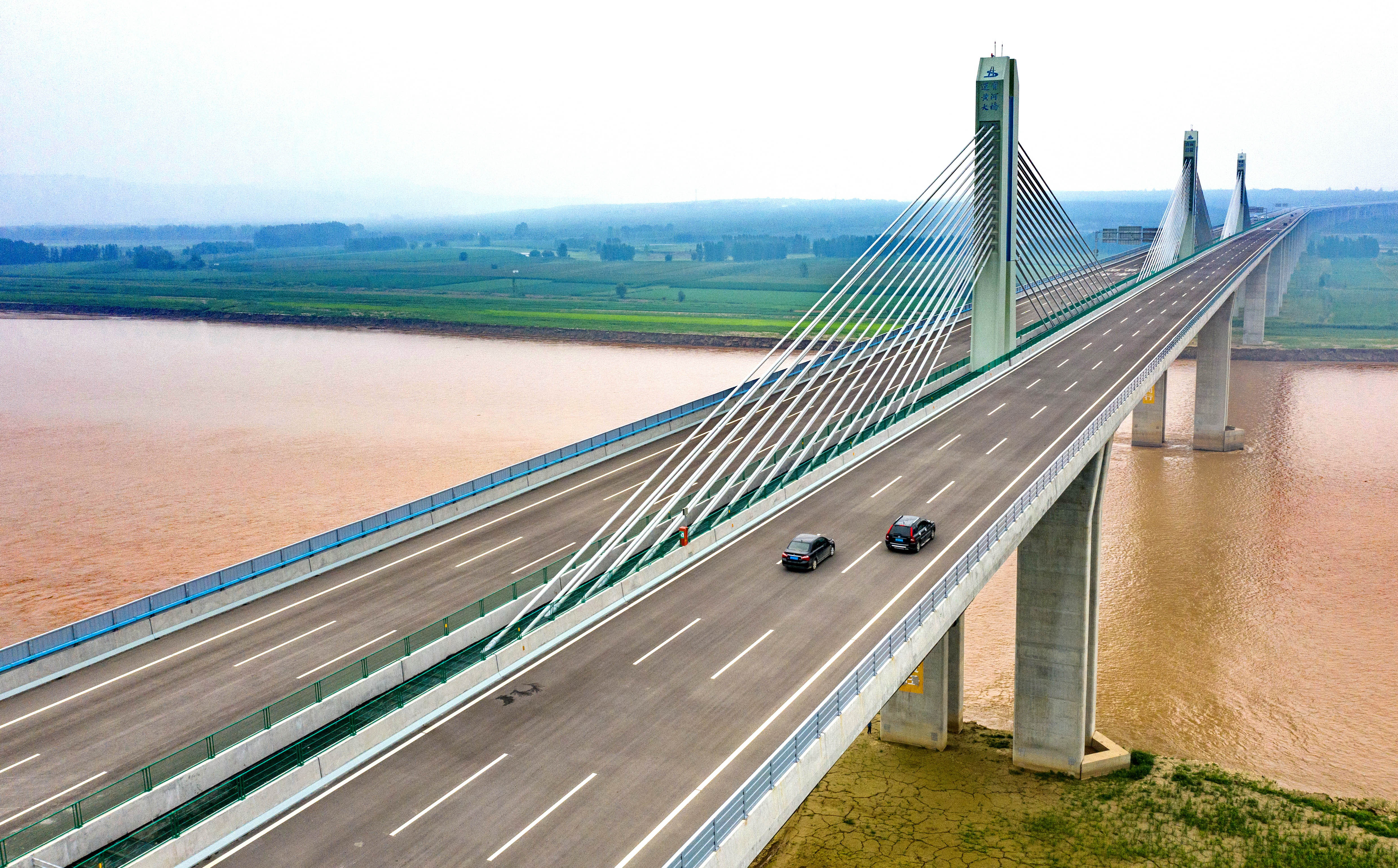 8月23日,车辆行驶在运宝黄河大桥上。当日10时58分,备受瞩目的运城至灵宝高速公路运宝黄河大桥正式通车运营。 记者 薛俊 摄