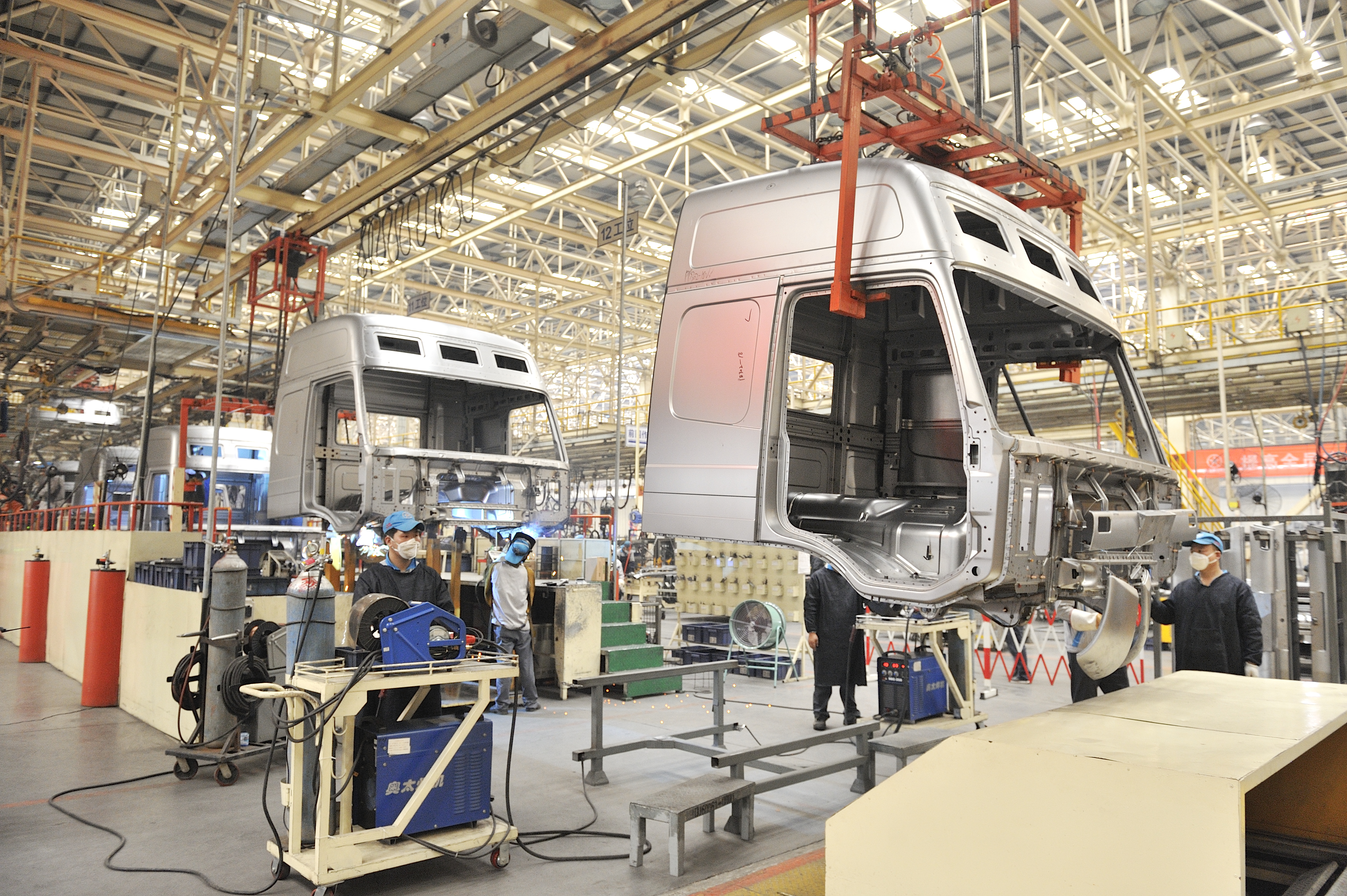 大运汽车股份有限公司员工在新能源汽车生产流水线上作业。 本报记者 闫 鑫 摄