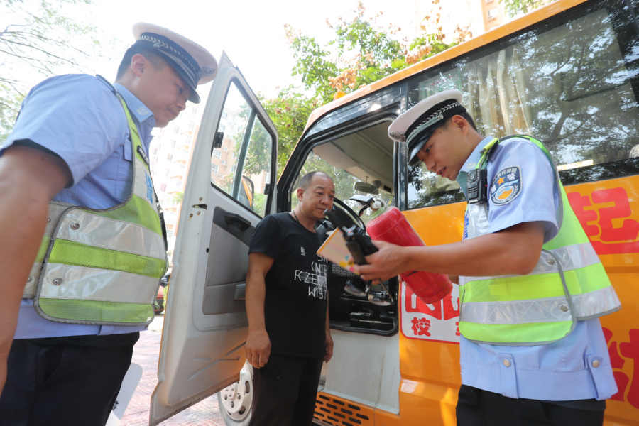 自8月16日开始,该大队先后对全区的中小学校车进行了安全检查,着重对校车的安全性能、证照、备案、消防设施设备等情况进行了仔细查验。