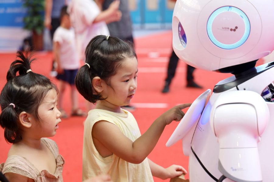 “妈妈,你看这里有机器人在跳舞呢。”在工博会中心展厅门口,小朋友们和机器人问好、握手,一起互动,还了解了农业播种无人机、写毛笔字的机器人、搬重物的机器人等先进“智造”;在室内各县(市、区)展区,大家体验了新型的智能手环、新型铝型材、血压监测仪、“老冯家”牛肉酱等特色亮点工艺产品;在工艺大师技能现场演示区,大家看到了各县(市、区)工艺大师的传统手工艺加工制作过程,包括澄泥砚、螺钿漆器、剪纸、刺绣织布等。