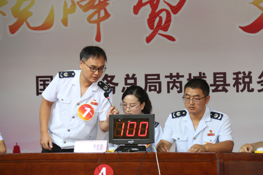 ▲8月22日,芮城县税务局举办“减税降费”支部擂台赛,检验全局党建和税收知识掌握情况。