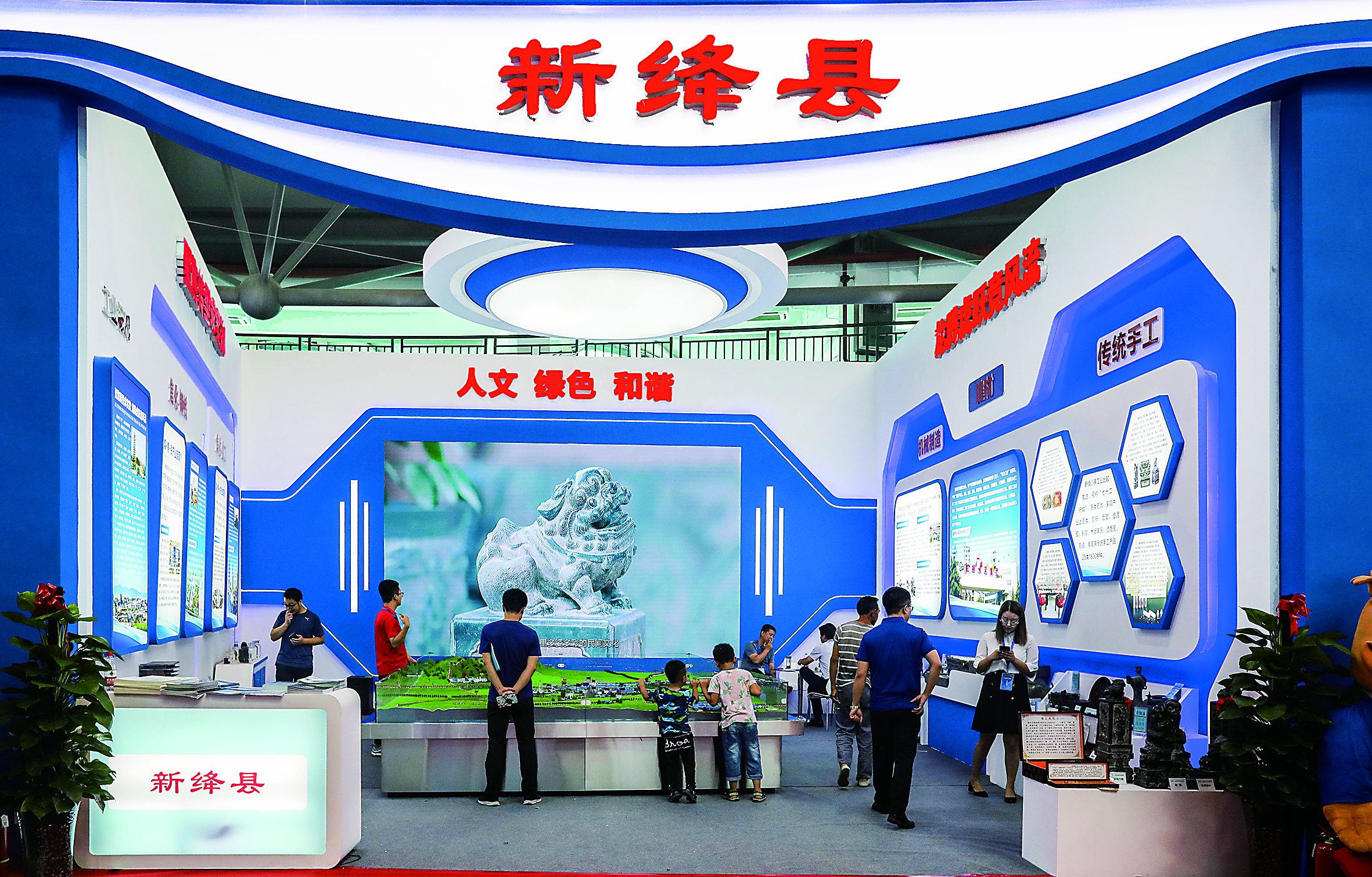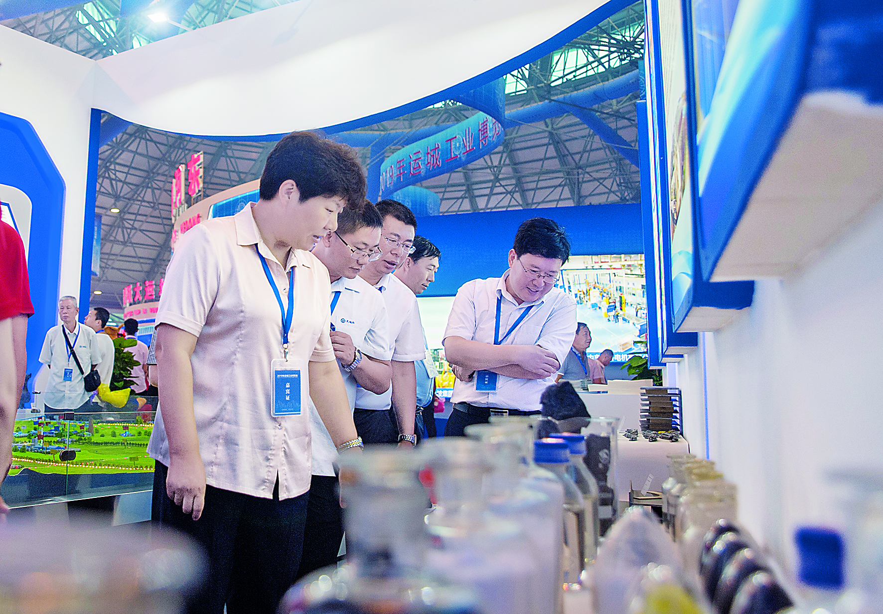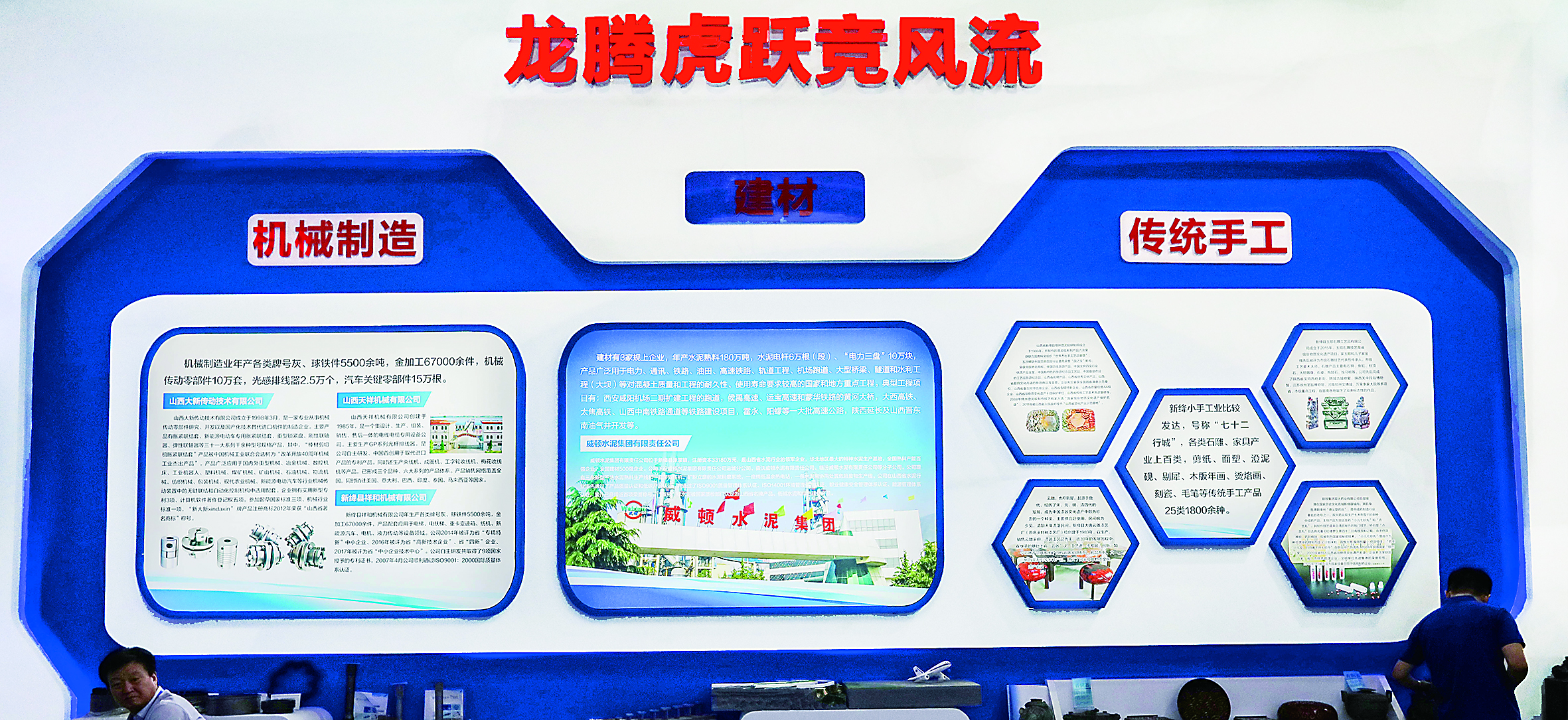 新绛展馆又是与众不同的。不同之处在于该县在展馆中心布置了一个偌大的沙盘,展示的是新绛县煤化产业循环经济的新模式、新业态。细看这个沙盘,该县近年来立足转型发展进行不懈探索的新成果一目了然。5个产业链25家企业100余种产品集群亮相,也让广大参观者对新绛工业有了新认识。