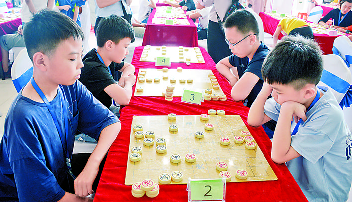 现场,小选手个个斗志昂扬,隔着楚河汉界“指点江山”。小小的棋盘,成了他们尽情展示聪明才智的舞台。