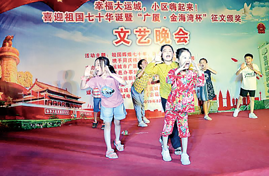 运城晚报讯(记者 刘凯华)在新中国成立70周年来临之际,8月31日晚,运城市广厦房产公司、盐湖区安邑办金海湾社区在金海湾小区文化大广场,举办了“广厦·金海湾杯”有奖征文活动颁奖晚会,活动现场吸引了300多名小区居民前来观看。