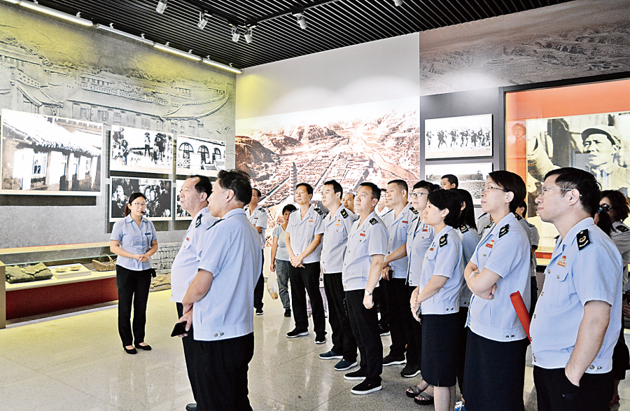 8月29日,运城市税务局第一税务分局、第二税务分局党支部党员干部在参观红色教育基地展览馆。