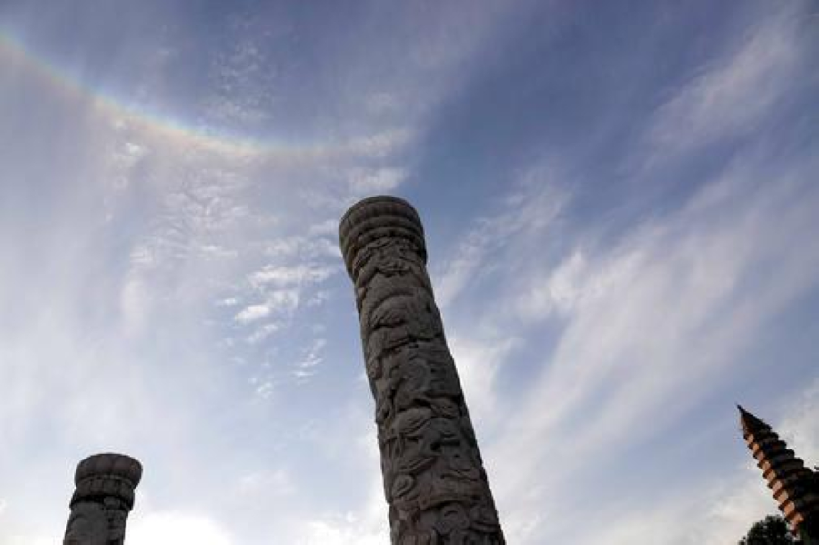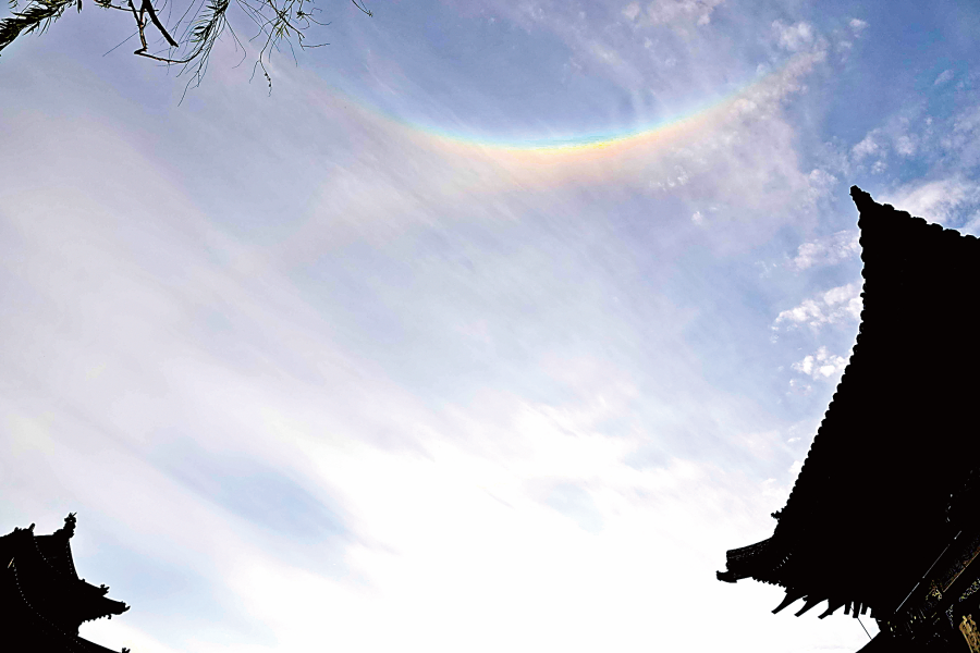8月30日下午5时30分许,新绛县千年古城绛州城上空,出现难得一见的反向双彩虹,持续一小时,吸引了众多市民观看拍照。