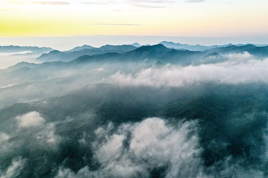 双彩虹是在水滴内进行两次反射后形成的特殊现象,在原彩虹的外围出现一条直径稍大、颜色反转的同心彩虹,内层彩虹称为主虹,外侧为红色,内侧为蓝色,颜色较亮;外层彩虹称为副虹,外侧为蓝色,内侧为红色,颜色较暗,形似发箍。 特约摄影 高新生