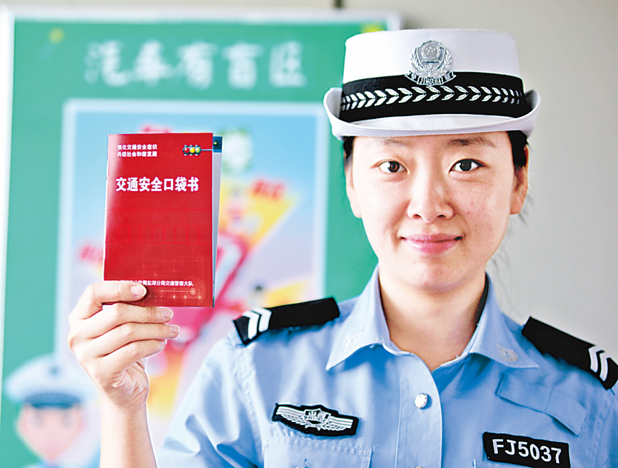 民警展示《交通安全口袋书》 樊朋展 摄