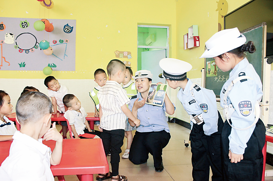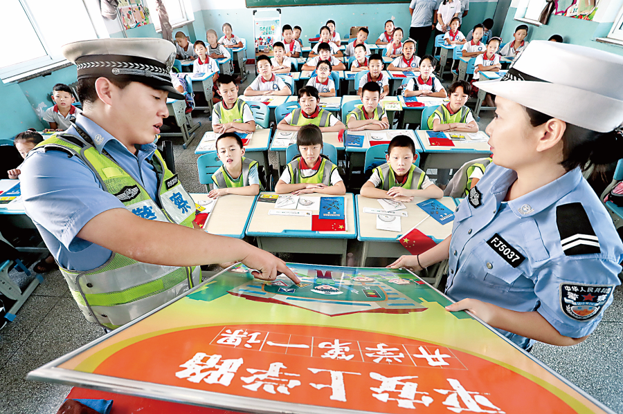 连日来,全市各交警大队深入辖区中小学校,相继组织开展“知危险、会避险”开学交通安全第一课,宣讲交通安全常识,并发放“中小学生交通安全手册”提示出行细节。同时,全市交警还通过户外LED电子屏引导广大师生、家长安全文明出行。