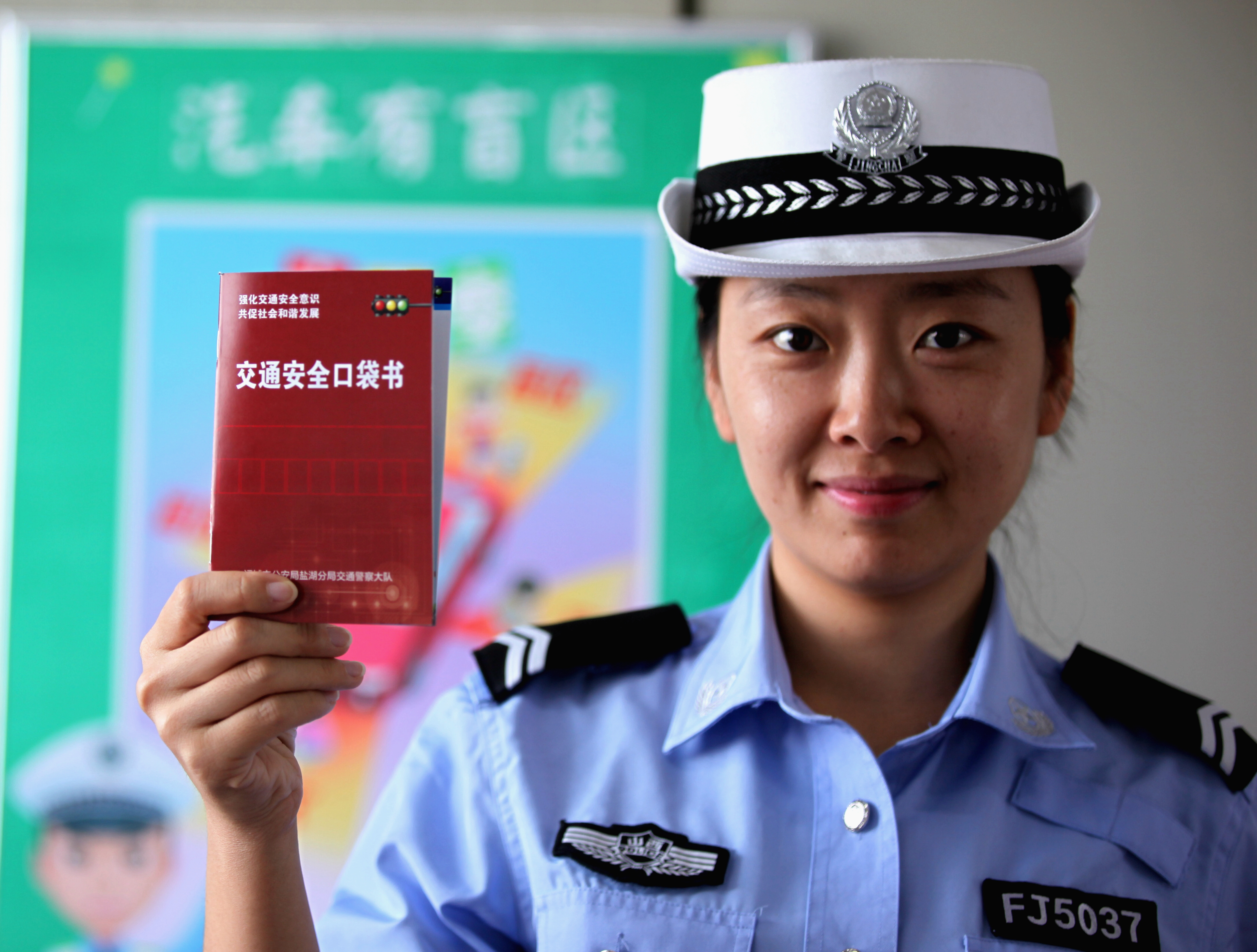 民警展示《交通安全口袋书》 樊朋展 摄