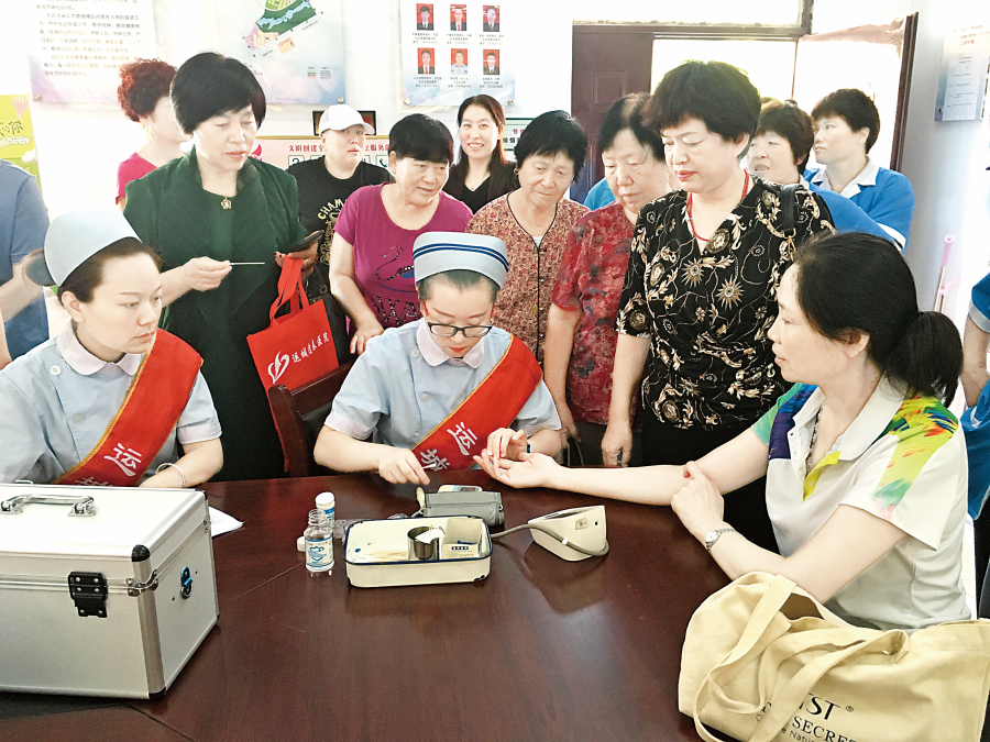 讲座结束后,王玉红带领医护人员还为居民提供疾病义诊和健康咨询服务,免费为居民测血糖、血压(下图),给居民发放了健康知识手册等资料。