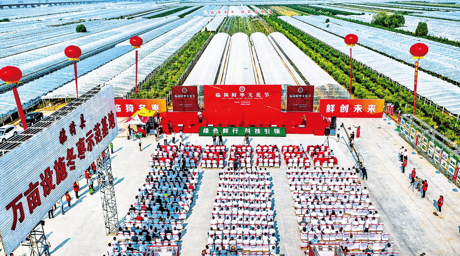 ▲9月5日,2019年“临猗鲜枣文化节”在庙上乡临猗枣业博览馆前隆重开幕。图为开幕式现场。 记者 薛俊 摄