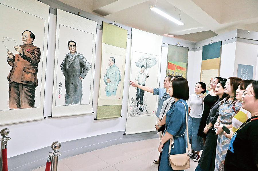 画展中,《教稼图》表现了习近平总书记在山西调研时讲的“后稷教民稼穑于稷山”的深刻内涵,《北京的长途》彰显了改革开放给民生带来的实惠,《牵》和《今年多收这个数》表现了千年枣园话丰年、农村美、农业兴、农民富的生动实践,《春沐山村》《远山召唤》凸显后稷故里的变迁、展示中国古村落新时代的容颜……