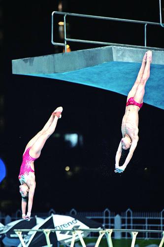 ▲9月7日,段宇(右)/掌敏洁在比赛中。 当日,在马来西亚吉隆坡举行的第8届跳水亚洲杯混合双人10米台决赛中,中国选手段宇/掌敏洁以317.94分的成绩获得冠军。新华社记者 朱炜 摄