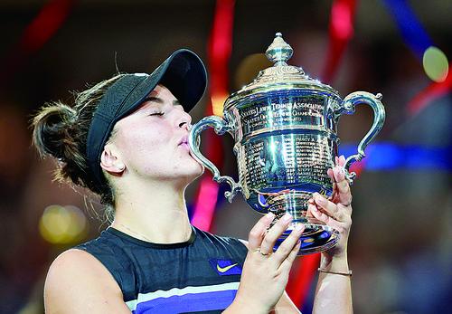 当日,在2019美国网球公开赛女单决赛中,加拿大选手安德烈埃斯库以2比0战胜美国选手小威廉姆斯(塞雷娜·威廉姆斯),夺得冠军。新华社记者 刘杰 摄