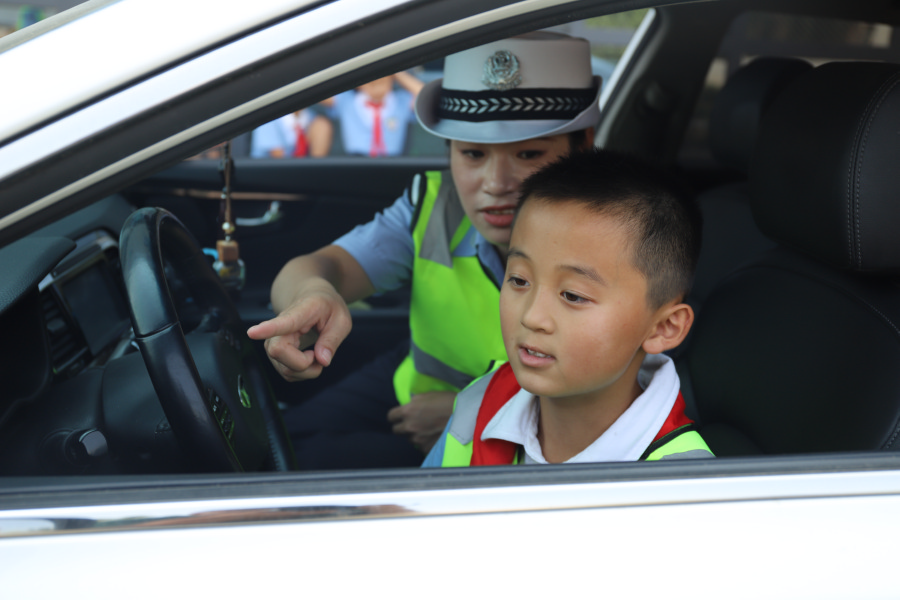 活动中,学生在交警的指挥带领下,安全有序地通过红绿灯、斑马线,对“过马路请走斑马线”“红灯停、绿灯行、黄灯亮了等一等”有了深刻的体会认识。同时,民警还现场模拟汽车盲区,教育同学不要在车辆附近玩耍,避免受到伤害。 刘佳 摄