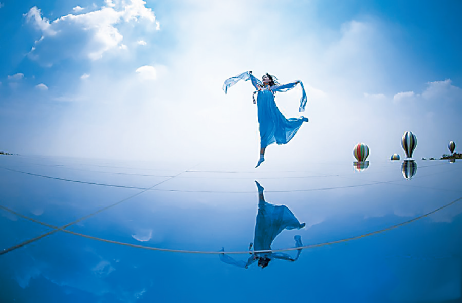 据悉,当日郑州版“天空之镜”在河南新密伏羲山惊艳亮相。从低处仰拍,这个穿着汉服的女孩儿,在“天空之镜”上翩翩起舞,有一种空明澄澈的感觉,仿佛置身于“水天一色”之中,梦幻浪漫。