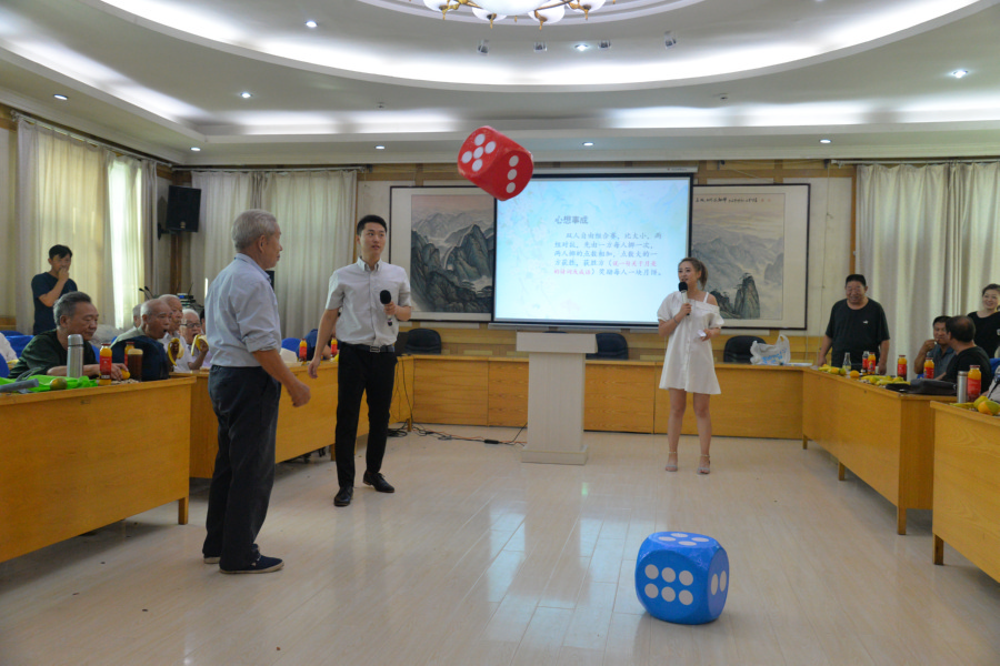 本次活动分为猜字谜、双人搭档诵诗词和老兵向祖国吟诗助兴三个环节。在猜字谜活动中,老干部们以中秋佳节为主题互出谜面、互猜字谜,现场气氛十分活跃;到了双人搭档诵诗词环节,大家拿出事先准备好的大骰子互比点数,赢方现场出一首关于中秋诗或成语,大家绞尽脑汁挖掘有关词句,现场不时蹦出的奇葩词句引得大家哄堂大笑;老兵向祖国吟诵助兴环节将此次活动推向了高潮,不少老兵吟完诗后还不忘向大家介绍作者和诗意,深深陶醉其中。活动在一首《十五的月亮》的歌声中圆满结束。