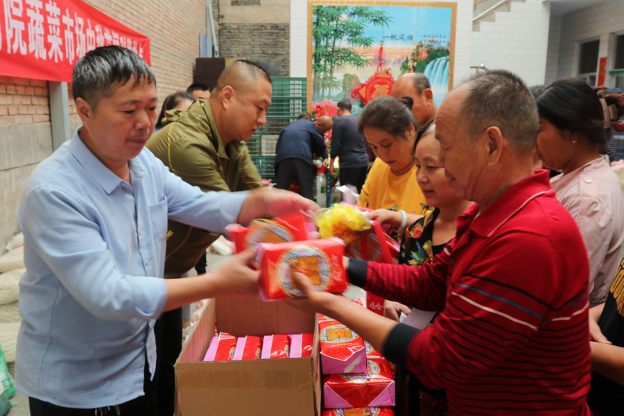 ▲9月11日,闻喜县西社一组村民高兴地领到中秋节福利。
