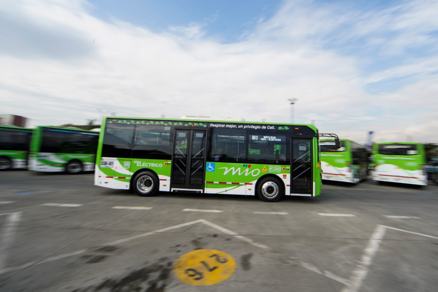 9月10日,在哥伦比亚西部考卡山谷省云博市一处公交站,中国产电动公交车准备向卡利市发车。