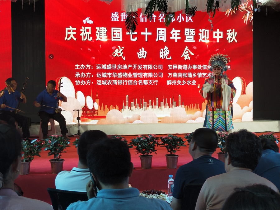 运城晚报讯(记者 崔萌)9月11日晚,盐湖区安邑办信合名都社区,联合运城盛世房地产开发有限公司,举办了庆祝新中国成立70周年暨迎中秋戏曲晚会。