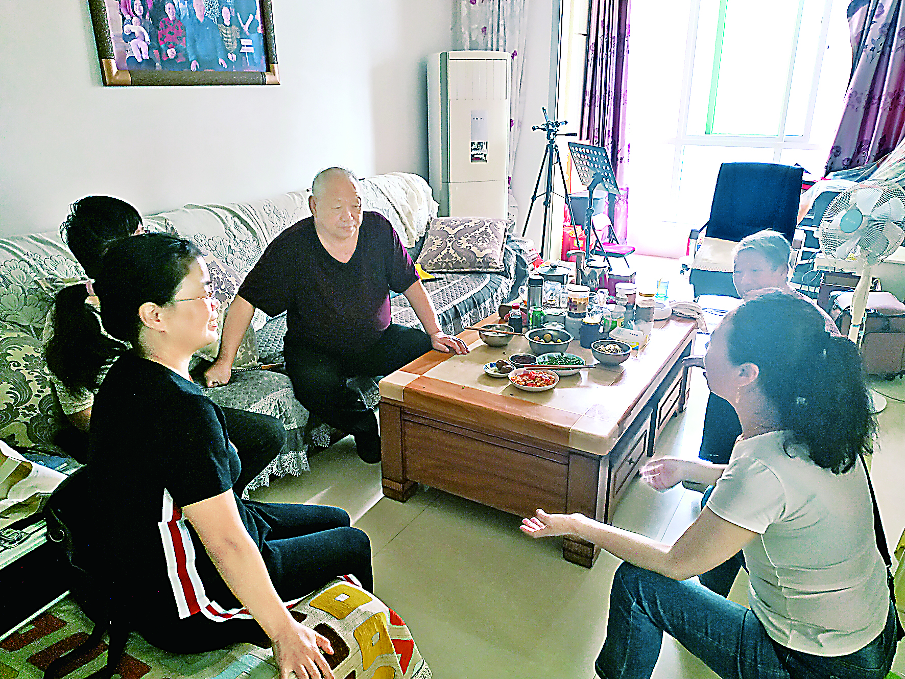 在老人家中,社区人员和留守老人坐在一起拉家常,一起回顾新中国成立70年以来身边发生的美好变化。社区人员仔细倾听了老人的家庭情况及生活中遇到的问题,并鼓励他们健康积极地面对生活,并告知“有困难就找社区”。慰问期间,老人们的脸上露出真挚的笑容,嘴里不停地说着对社区、对党的感谢。